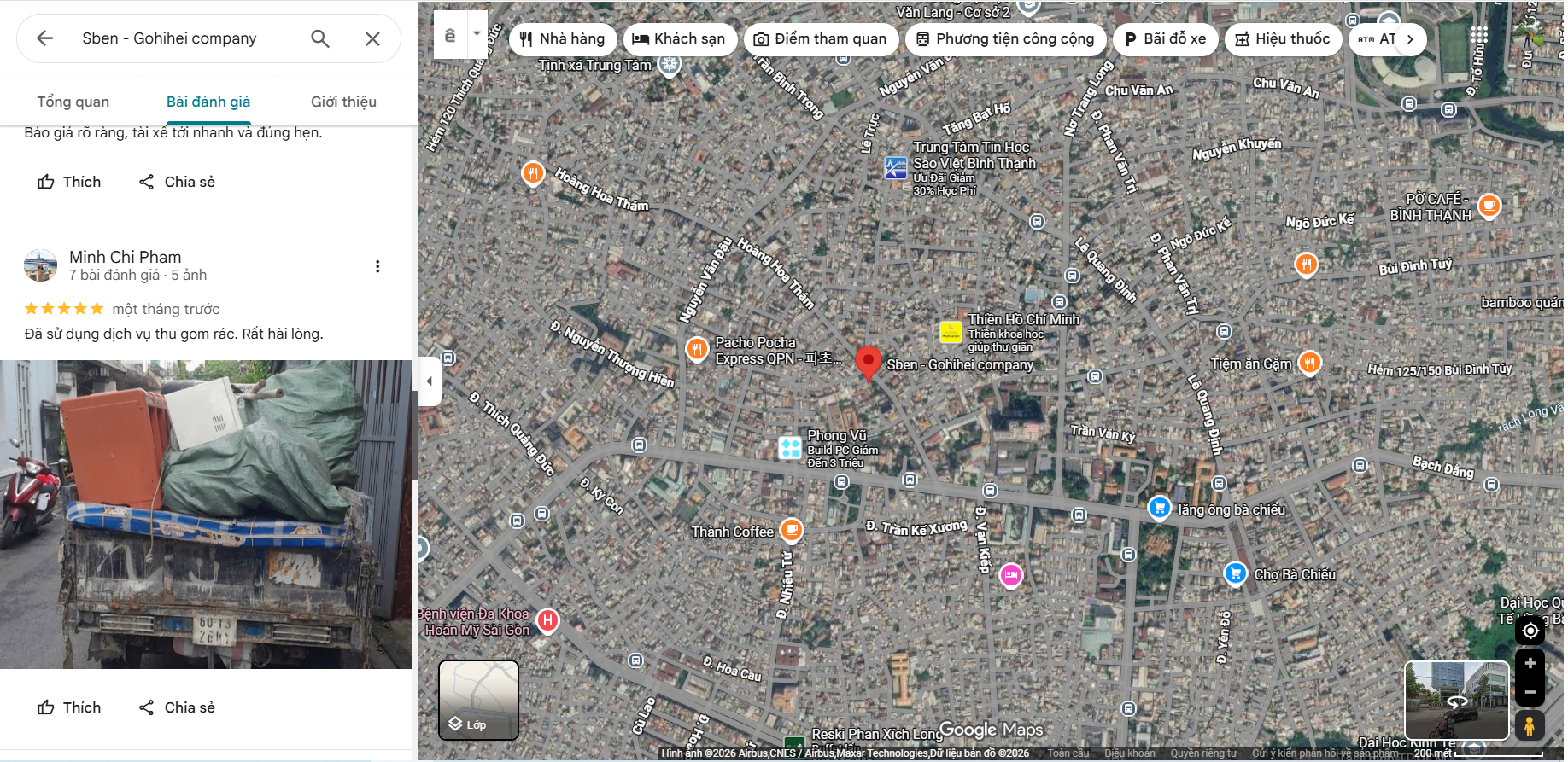 “đã sử dụng dịch vụ thu gom rác. Rất hài lòng.”